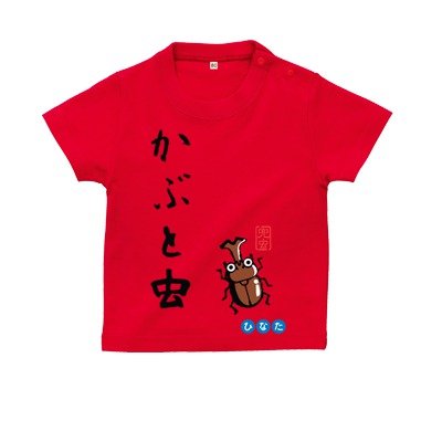 BabyChips カブトムシ(名入れ半袖ベビーTシャツ) 90 レッド