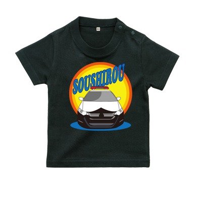 BabyChips パトカー(名入れ半袖ベビーTシャツ) 100 ブラック