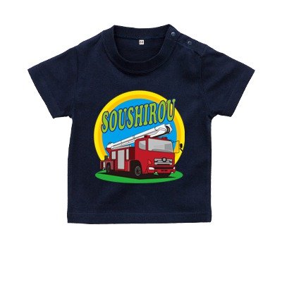 BabyChips 消防車(名入れ半袖ベビーTシャツ) 70 ネイビー