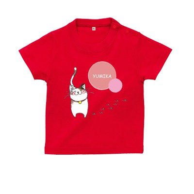 BabyChips 猫 赤(名入れ半袖ベビーTシャツ) 100 レッド