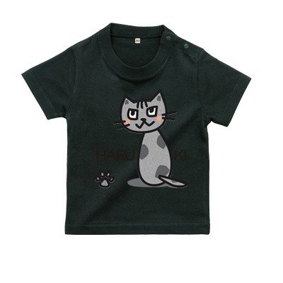 BabyChips ふりむき猫(グレー)(名入れ半袖ベビーTシャツ) 140 ブラック