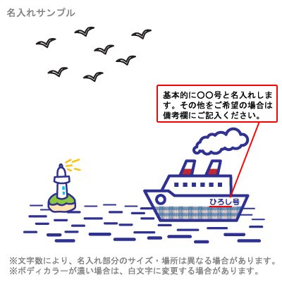 お子様のお名前が入った船で船旅へ出発~ マリンテイストバッチリなデザインです。