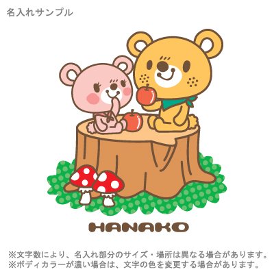 仲良くリンゴを食べているくまさん。一緒にたべるとおいしいね。