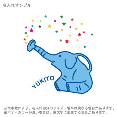 かわいいぞうのじょうろのイラストです。ぞうの鼻から出る星がメルヘンな雰囲気を創ります。