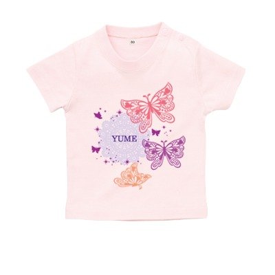 BabyChips バタフライ(名入れ半袖ベビーTシャツ) 90 ライトピンク