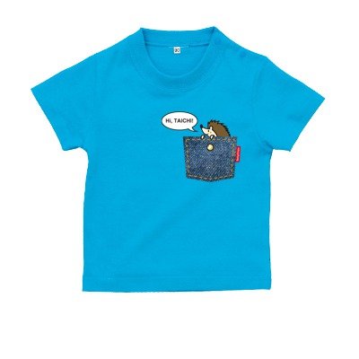 BabyChips ポケットはりねずみ(名入れ半袖ベビーTシャツ) 100 ターコイズ