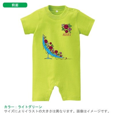 BabyChips バラ(名入れ半袖ベビーロンパース) 80 ライトグリーン