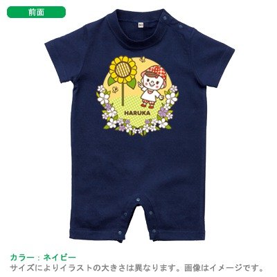BabyChips ヒマワリみ~いつけた (女の子)(名入れ半袖ベビーロンパース) 70 ネイビー