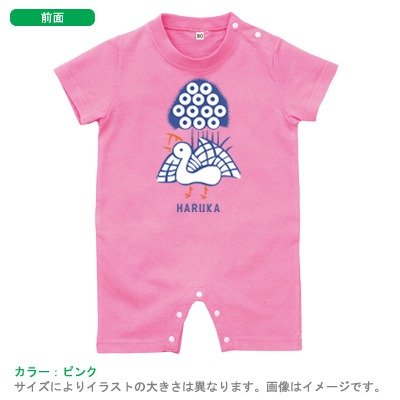 BabyChips 麻雀(カラー)(名入れ半袖ベビーロンパース) 70 ピンク