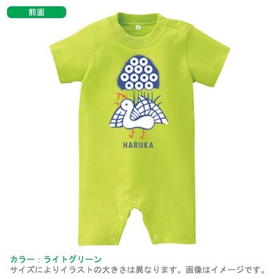 BabyChips 麻雀(カラー)(名入れ半袖ベビーロンパース) 80 ライトグリーン