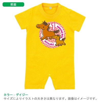 BabyChips お馬の親子(ピンク)(名入れ半袖ベビーロンパース) 80 デイジー