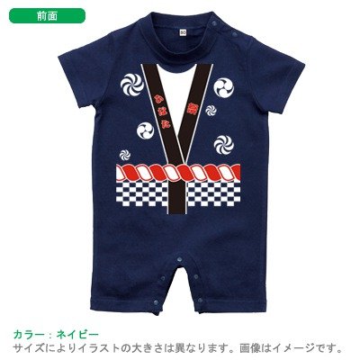 BabyChips 祭りだ わっしょい (名入れ半袖ベビーロンパース) 70 ネイビー