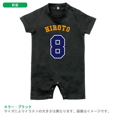 BabyChips ベースボールナンバー(名入れ半袖ベビーロンパース) 80 ブラック