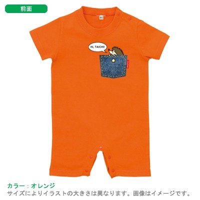 BabyChips ポケットはりねずみ(名入れ半袖ベビーロンパース) 70 オレンジ