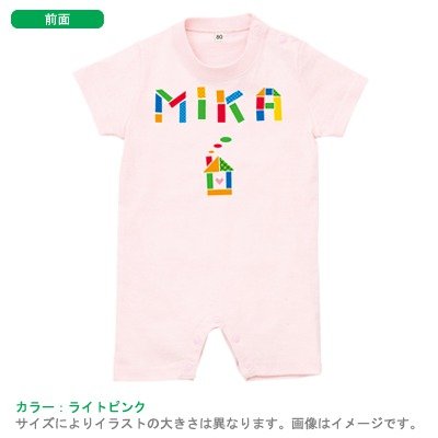 BabyChips つみきの名前(女の子用)(名入れ半袖ベビーロンパース) 70 ライトピンク