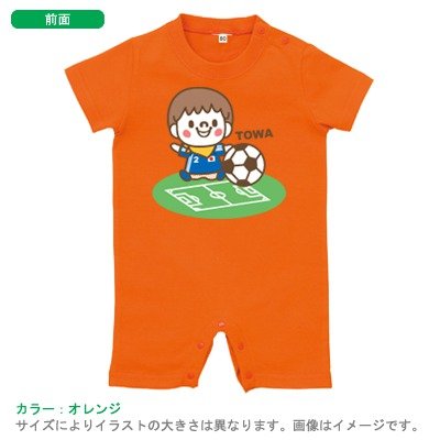 BabyChips ちいさなサッカー選手(男の子)(名入れ半袖ベビーロンパース) 80 オレンジ