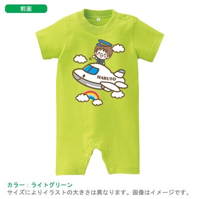 BabyChips ちいさなパイロット(名入れ半袖ベビーロンパース) 80 ライトグリーン