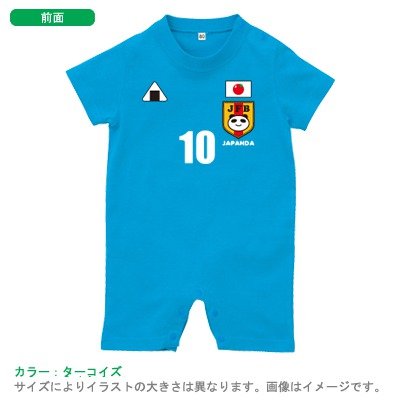 BabyChips にこにこ代表(サッカー男子)(名入れ半袖ベビーロンパース) 70 ターコイズ
