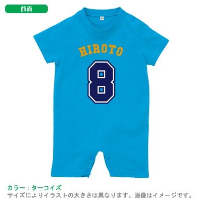 BabyChips ベースボールナンバー(名入れ半袖ベビーロンパース) 70 ターコイズ