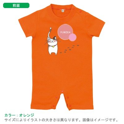 BabyChips 猫_赤(名入れ半袖ベビーロンパース) 70 オレンジ