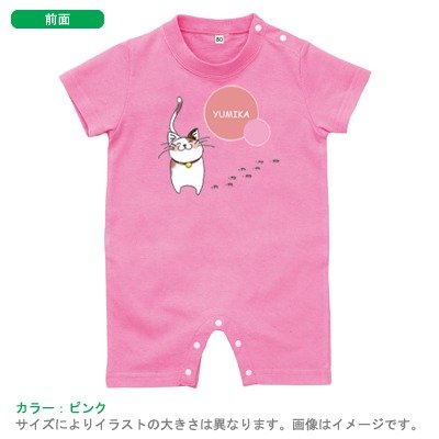 BabyChips 猫_赤(名入れ半袖ベビーロンパース) 80 ピンク