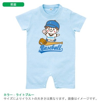 BabyChips ちいさな野球選手(男の子)(名入れ半袖ベビーロンパース) 80 ライトブルー