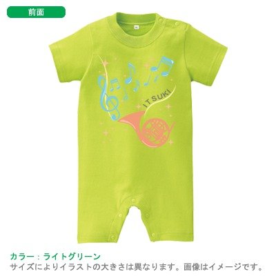 BabyChips ホルンと音符(名入れ半袖ベビーロンパース) 80 ライトグリーン