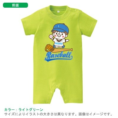 BabyChips ちいさな野球選手(男の子)(名入れ半袖ベビーロンパース) 80 ライトグリーン