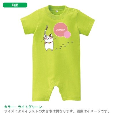 BabyChips 猫_赤(名入れ半袖ベビーロンパース) 80 ライトグリーン