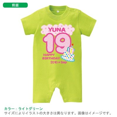 BabyChips ナンバーバースデー(女の子)(名入れ半袖ベビーロンパース) 80 ライトグリーン