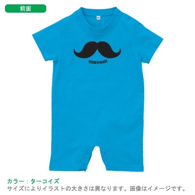 BabyChips シンプルな髭(名入れ半袖ベビーロンパース) 80 ターコイズ