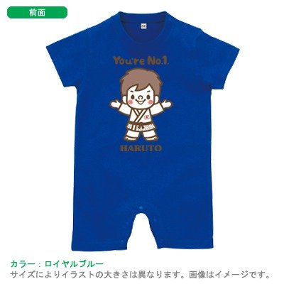 BabyChips ちいさな柔道選手(白:男の子)(名入れ半袖ベビーロンパース) 80 ロイヤルブルー