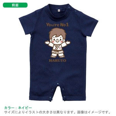 BabyChips ちいさな柔道選手(白:男の子)(名入れ半袖ベビーロンパース) 80 ネイビー