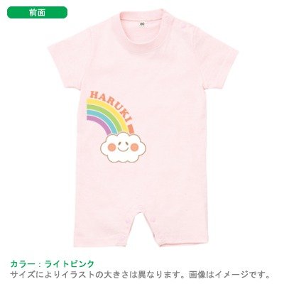 BabyChips 虹(名入れ半袖ベビーロンパース) 70 ライトピンク