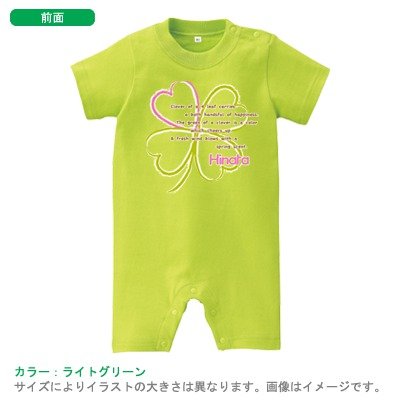 BabyChips HAPPYクローバー(ピンク)(名入れ半袖ベビーロンパース) 80 ライトグリーン