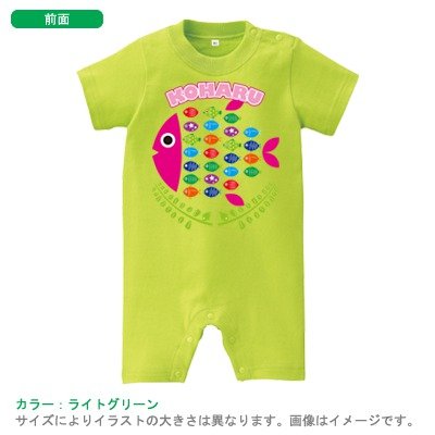BabyChips さかなの魚(ピンク)(名入れ半袖ベビーロンパース) 80 ライトグリーン