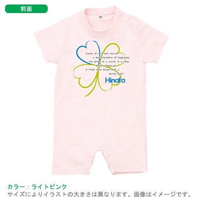 BabyChips HAPPYクローバー(ブルー)(名入れ半袖ベビーロンパース) 70 ライトピンク
