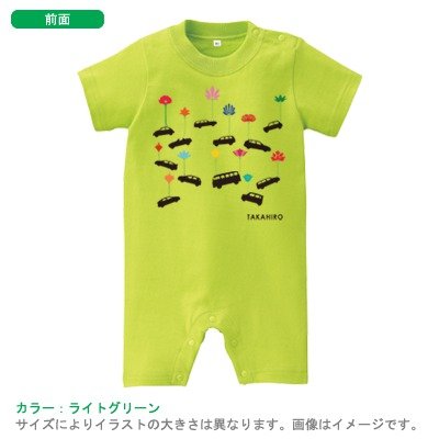 BabyChips 花とクルマ(名入れ半袖ベビーロンパース) 80 ライトグリーン
