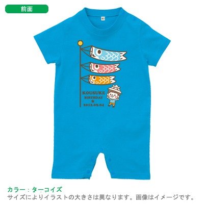 BabyChips こどもの日(名入れ半袖ベビーロンパース) 70 ターコイズ