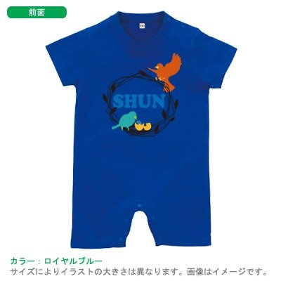 BabyChips バード(名入れ半袖ベビーロンパース) 80 ロイヤルブルー