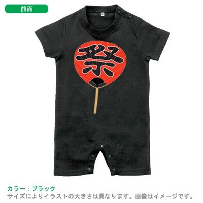 BabyChips お祭りうちわ(名入れ半袖ベビーロンパース) 80 ブラック