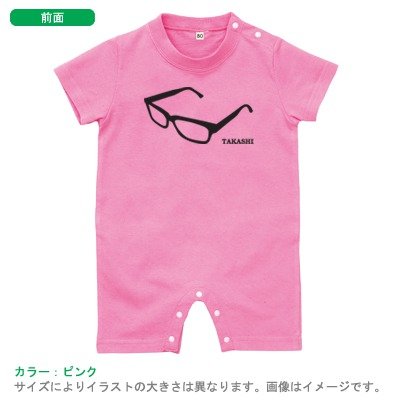 BabyChips シンプルメガネ(名入れ半袖ベビーロンパース) 70 ピンク