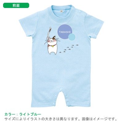 BabyChips 猫_青(名入れ半袖ベビーロンパース) 80 ライトブルー