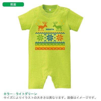 BabyChips ノルディック(トナカイ)(名入れ半袖ベビーロンパース) 80 ライトグリーン