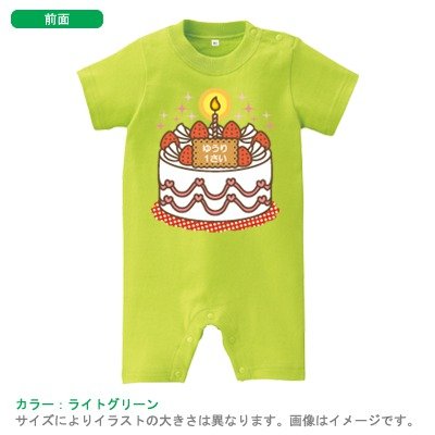 BabyChips happy cake(名入れ半袖ベビーロンパース) 80 ライトグリーン