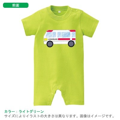 BabyChips 救急車(名入れ半袖ベビーロンパース) 80 ライトグリーン