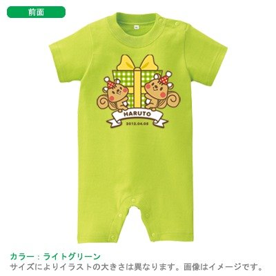 BabyChips プレゼント(リス)(名入れ半袖ベビーロンパース) 80 ライトグリーン