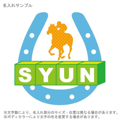 - 馬がジャンプしてるポップなイラストです。名前ブロックもかわいいね