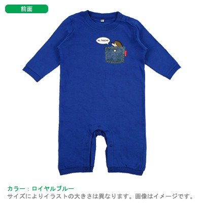 BabyChips ポケットはりねずみ(名入れ長袖ベビーロンパース) 70 ロイヤルブルー