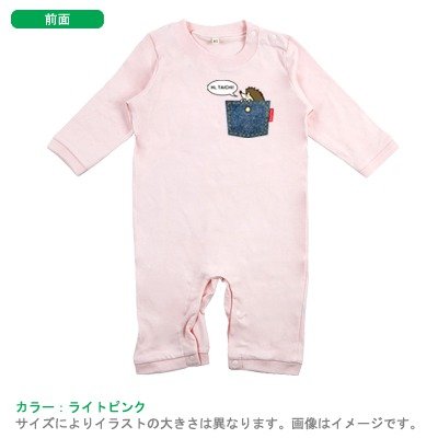 BabyChips ポケットはりねずみ(名入れ長袖ベビーロンパース) 80 ライトピンク